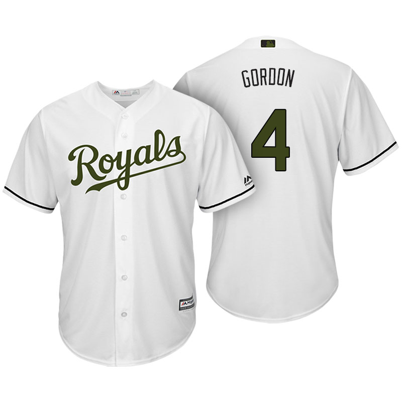 Kansas City Royals Alex Gordon White 2017 Memorial Day Cool Base Jersey Men