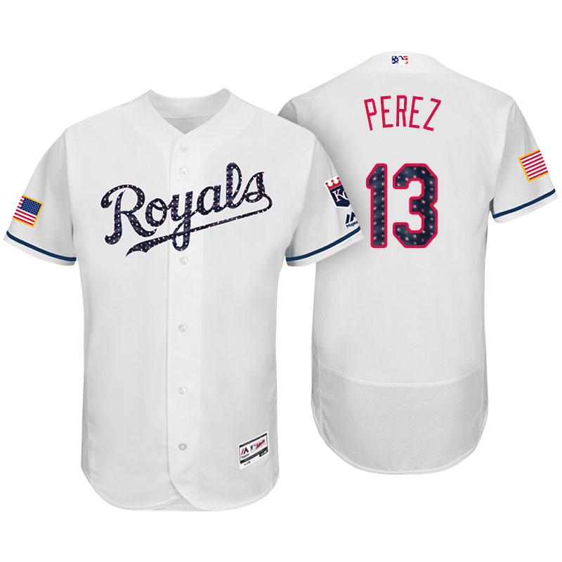 Men’s Kansas City Royals Salvador Perez White 2017 Stars & Stripes Flex Base Jersey