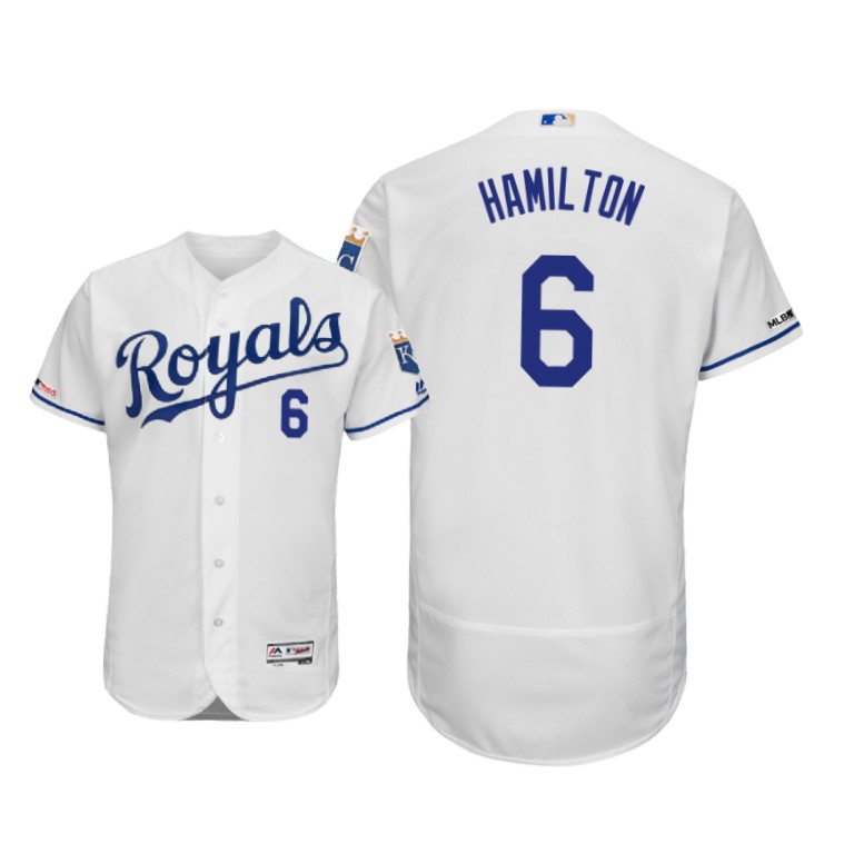 Royals White Billy Hamilton MLB 150th Anniversary Patch Flex Base Jersey Men’s